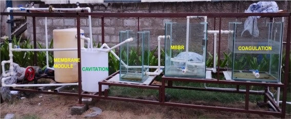 The sequence of events that takes place in the pilot plant plays an important role in the treatment process of the effluent. The coagulation removes turbidity caused by suspended solids by destabilizing the charges of the particles using a chemical coagulant. The biofilm grown on MBBR reduces the heavy metal content, degrades the biodegradable pollutants while the cavitation phenomenon destroys all types of pollutants, resulting in the in situ generation of radicals, and energy which are responsible for the pollutant degradation. Finally, surface modified membrane separates all the pollutants present in the wastewater. With this sequence, the pilot plant of 200 Litres Per Day capacity removes pollutants and the treated water can be utilized for agricultural activities, and cleaning purposes.