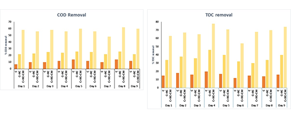 The ability of the technology to generate oxidizing radicals in-situ, significantly reduced the reliance on external oxidizing agents. On the other hand, modifying the membrane (M) surface using boehmite sol synthesized using sol-gel process, decreased the pore size from micro-scale to nano-scale and led to a significant improvement in its performance. After optimizing individual systems, a pilot-scale setup has been set up at the Prime Textiles premises.